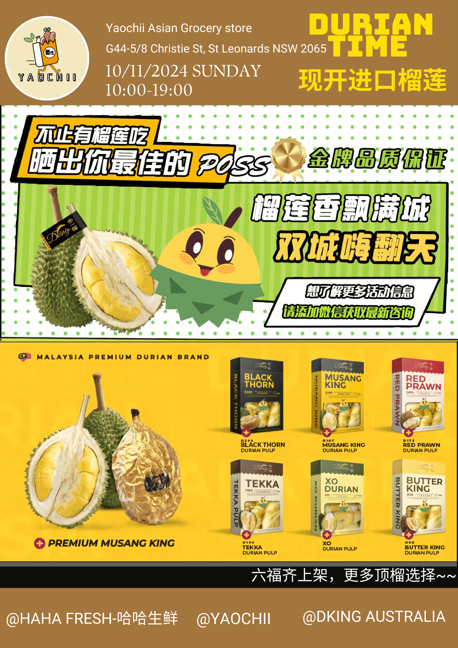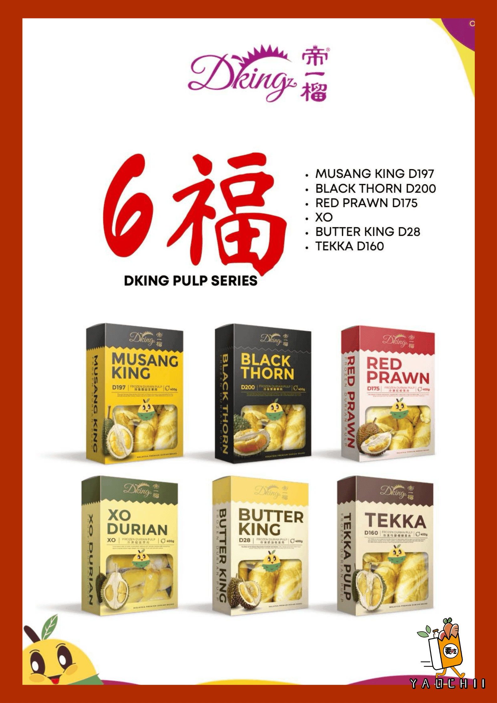Come and enjoy the rich, creamy taste of the finest durians straight from Malaysia. Hurry, while supplies last!
